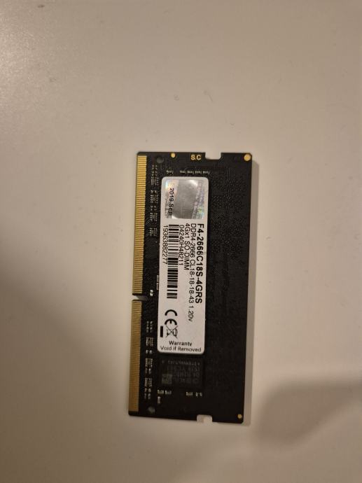 G.SKILL Ripjaws DDR4 – 4 GB – 2666 MHz. Prodajem G.Skill Ripjaws DDR4 memoriju kapaciteta 4GB u soDIMM formatu. Radi se o memoriji namijenjenoj za prijenosna računala. Memorija je rabljena ali potpuno funkcionalna.