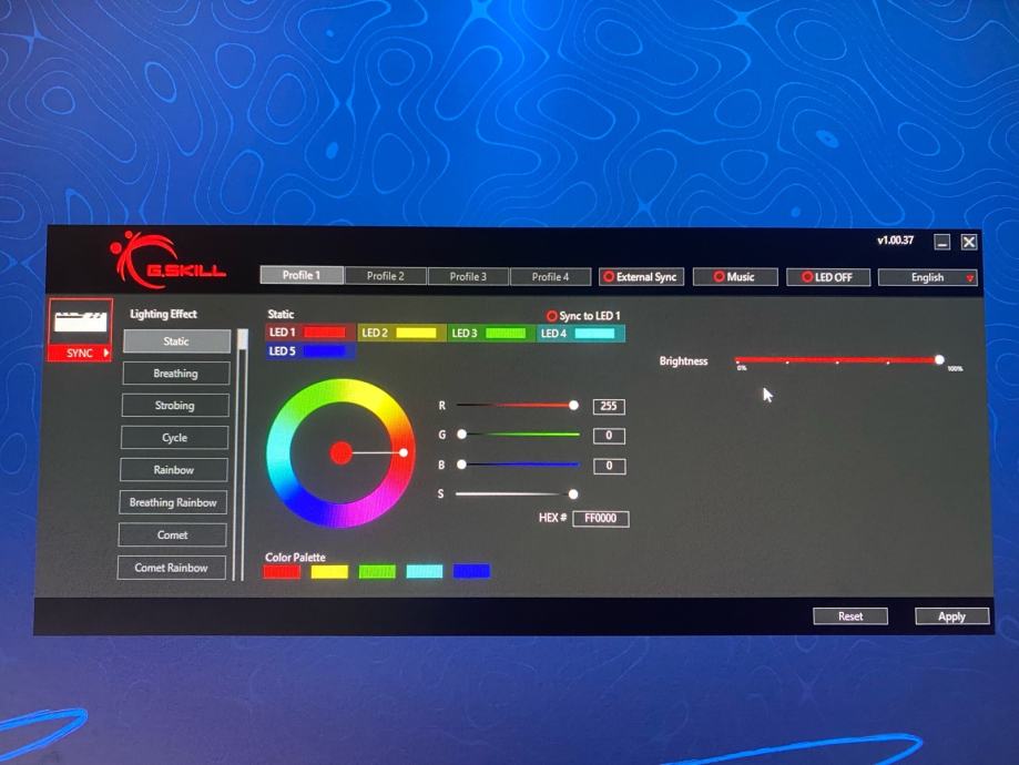 Ima RGB,kontrolira se pomocu G.SKILL softwera koje se preuzima na njihovoj službenoj stranici ili pomoću softwera kao što su Asus Aura Sync,GIgabyte RGB Fusion,MSI Mystic Light…
