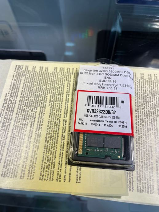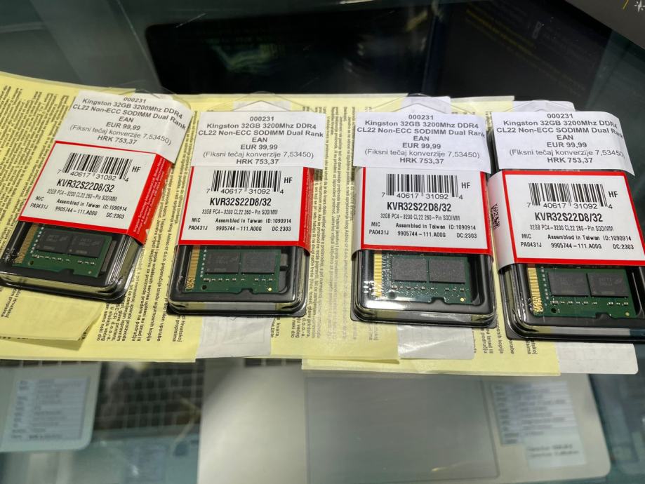 KINGSTON 32GB 3200MHz DDR4 CL22 Non-ECC SODIMM Dual Rank EAN: 740617310924