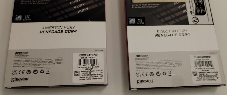 Kupljeni sredinom i krajem 2023., račun i višegodišnja garancija za oba. Radili cijelo vrijeme u kompletu na XMP postavkama sa Ryzenom 9 5900X na B450 ploči (na zadnjoj slici).