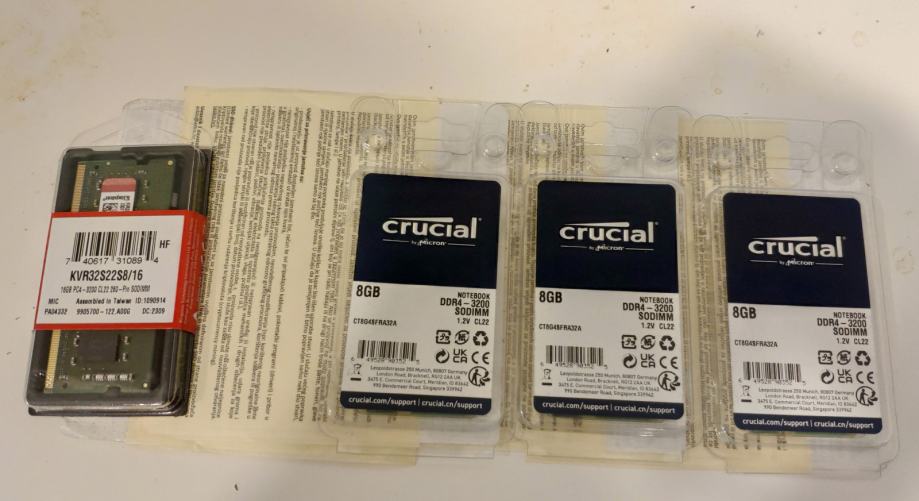 Kingston ili Crucial modul SODIMM 16GB i 8GB, novi zapakirani