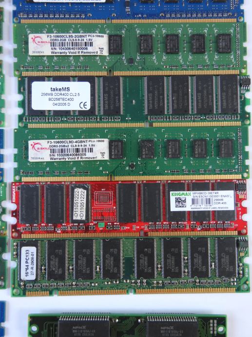 Lot raznih RAM memorija (ddr, ddr2, ddr3, sdram – ukupno 21 kom