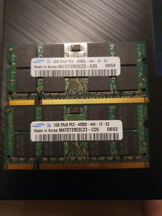 Prodajem 2 modula memorije za laptop Samsung 1G 2Rx8 PC2-4200S-44412-E3 u kompletu.