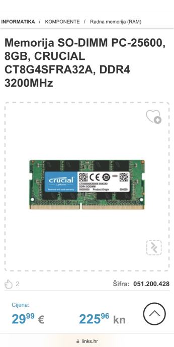 Prodajem navedenu memoriju so-dim ddr4 8gb