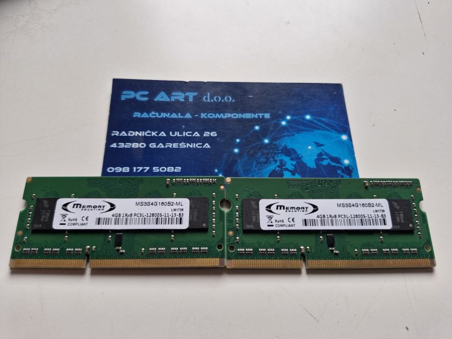 Memory Solution 8GB (2x4GB) DDR3, PC3L 1Rx8 12800S, 1600 MHz, SODIMM,