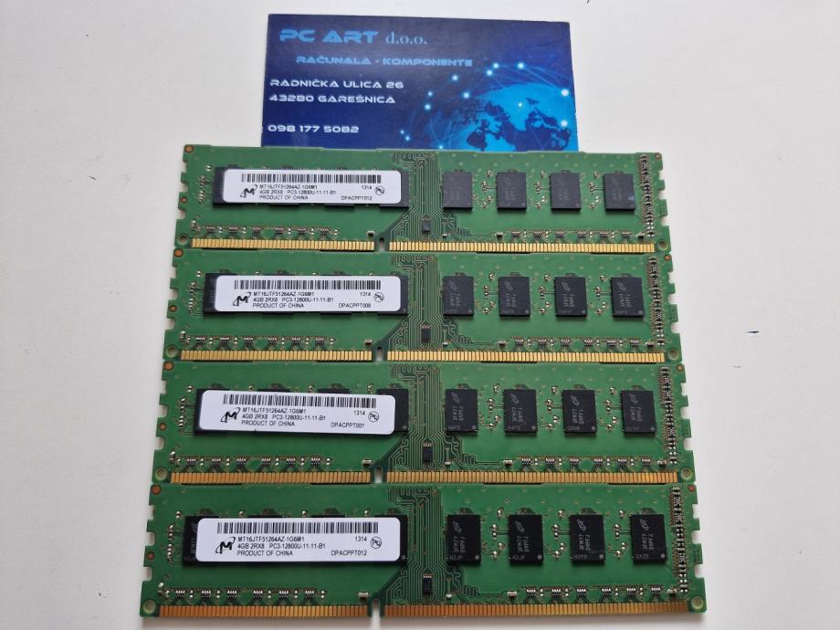 Micron 16GB (4x4GB) DDR3, 2Rx8 PC3 12800U, 1600 MHz - Račun / R1 / Jamstvo