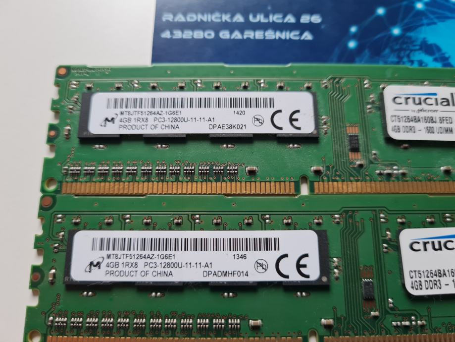 Micron 8GB (2x4GB) DDR3, 1Rx8 PC3 12800U, 1600 MHz - Račun / R1 / Jamstvo
