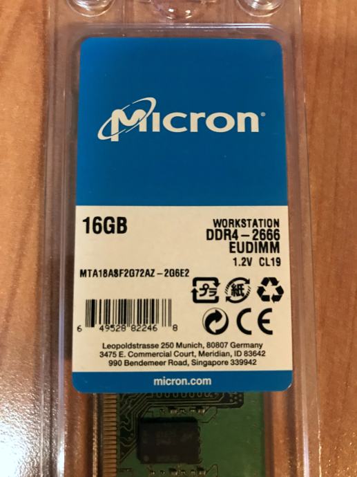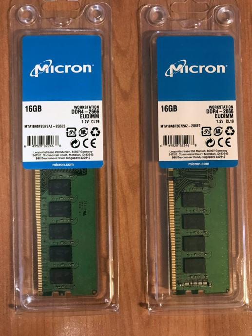 Micron DDR4 32GB (2x16GB) 2666MHz UDIMM ECC CL19 MTA18ASF2G72AZ-2G6E2