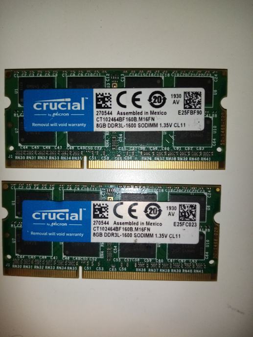 Prodajem 2 pločice memorije za laptop od 8gb =16gb ukupno