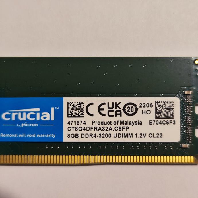 Prodajem set od dva Crucial DDR4 modula memorije, ukupno 16GB (2x8GB). Radi se o DIMM modulima koji su potpuno funkcionalni i testirani. Memorije su DDR4-3200 brzine s radnim naponom od 1.2V. Prodajem radi ugradnje 2x16 GB.