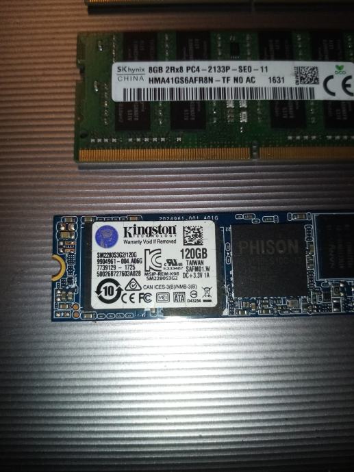 Prodajem 2 pločice od 8gb memorije za laptop, ukupno 16gb ddr4 2133p + jedan m2 ssd(nije nvme) od 120gb