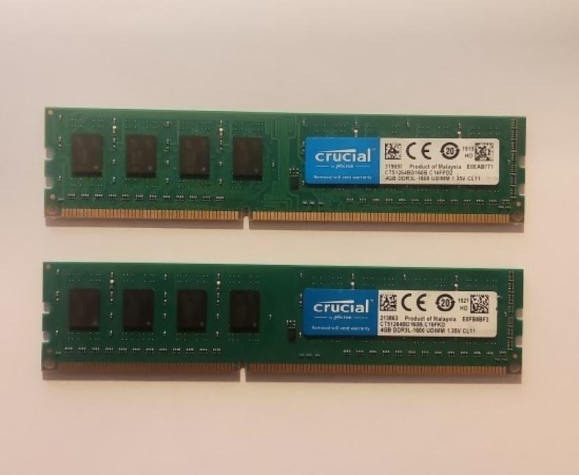 RAM memorija 4GBx2, DDR3L-1600, UDIMM, 1,35V, CL11 za desktop racunala, Crucial
