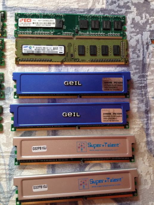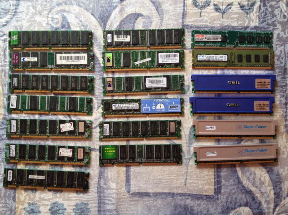 Prodajem memoriju za stolna PC računala, SD RAM, DDR, DDR2, cijena po komadu je 10 € do 20 €, ili svih 14 komada za 140 €