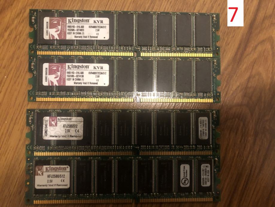 7. 2x 512MB DDR 400MT/s ECC Unbuffered DIMM CL3 2RX8 2.6V 184-pin 3€ Komad
