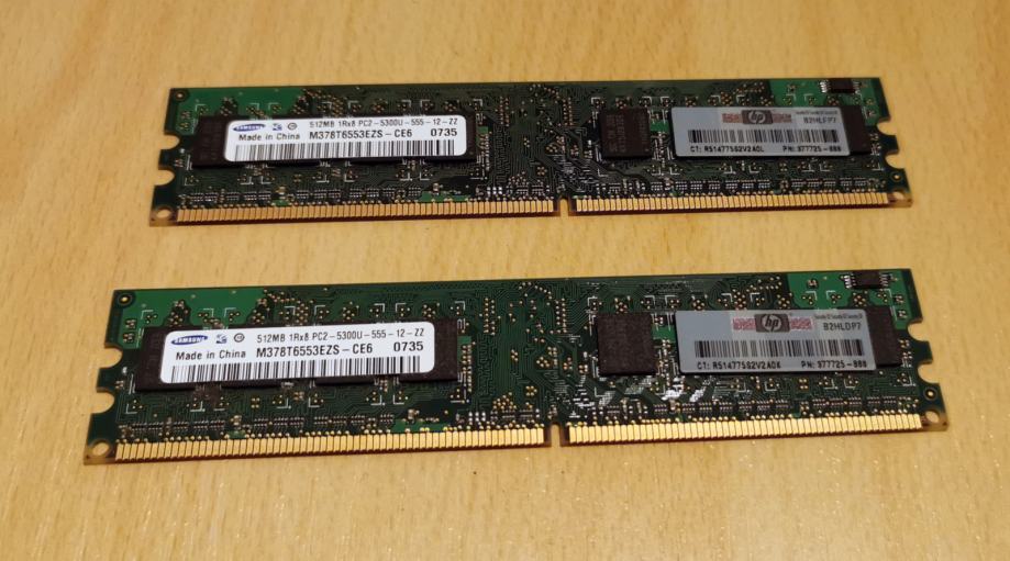 Prodajem dva modula SAMSUNG 512 MB memorije, navedena cijena je za oba modula.