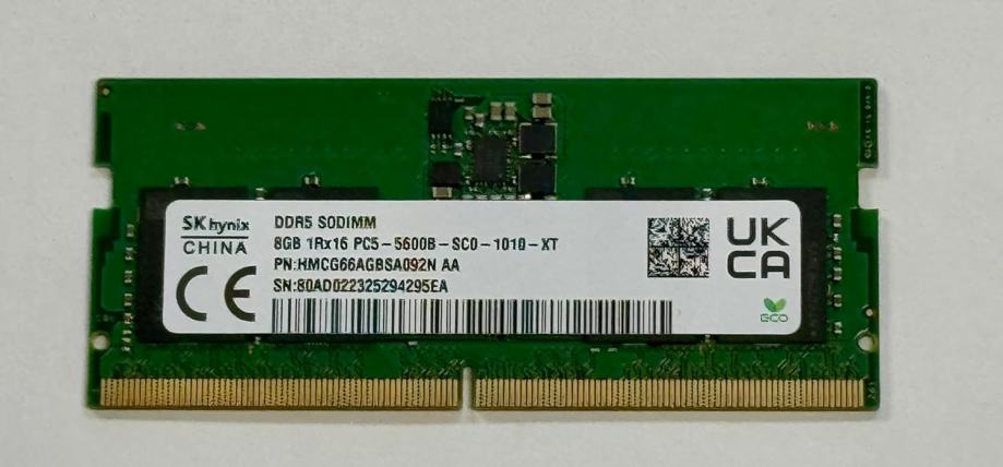 Prodajem 2 kom memorije 8GB DDR5 5600MHz SODIMM PC5-5600B-SC0 1Rx16 1.1V SO-DIMM 262-Pin