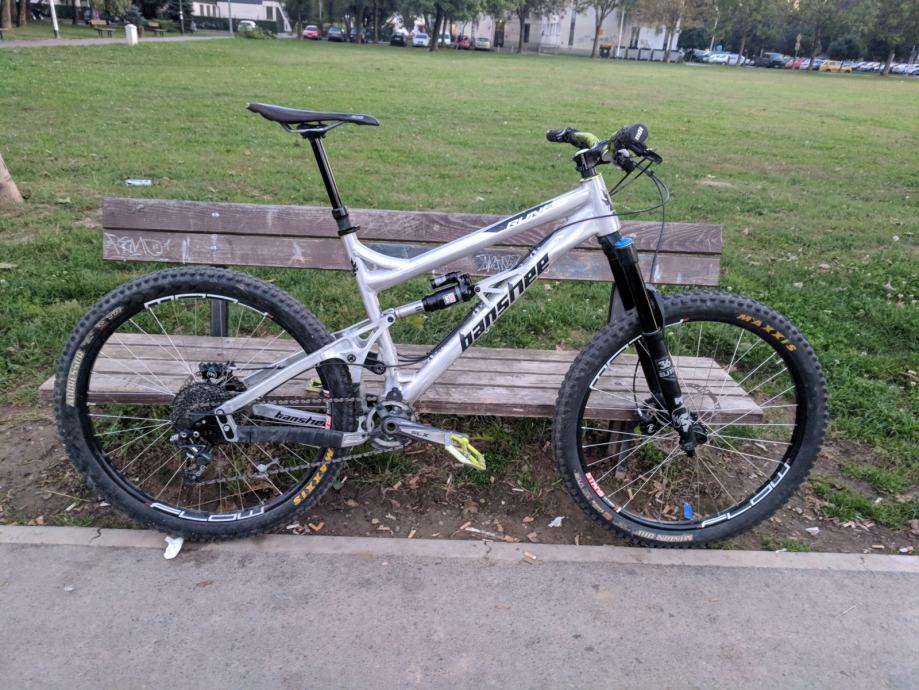 160mm hoda, L velicina, geo na linku: https://geometrygeeks.bike/bike/banshee-rune-2015/