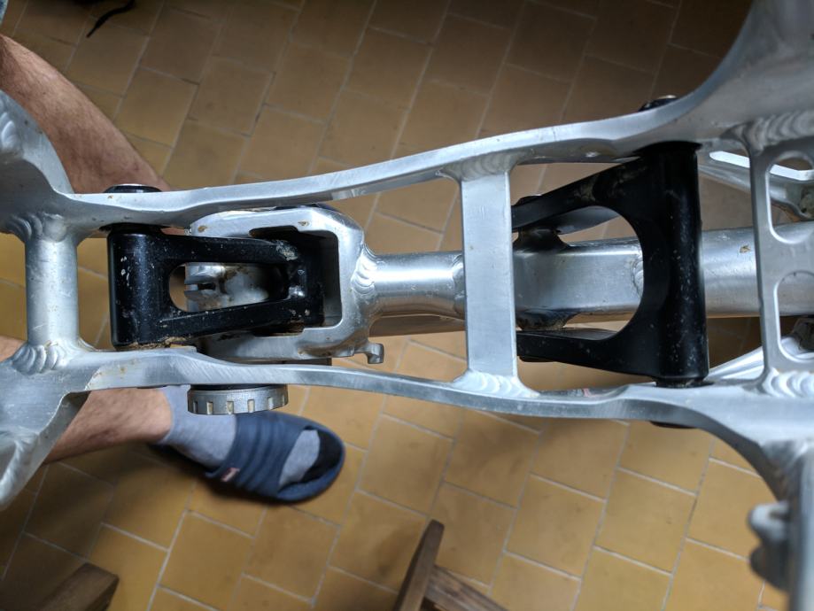Rama IMA CRACK ispod vara (druga slika priložena). Gornji desni shock mount, nije strukturalni. Garancija je ISTEKLA.