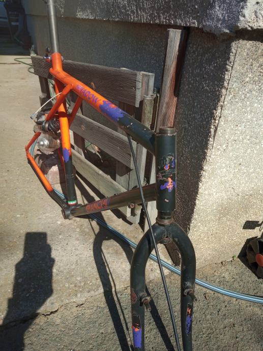 Uz okvir dajem njegov orginalan Deore XT 1" vilični ležaj, Shimano pogonski ležaj (talijanski navoj) i stražnju U-brake kočnicu također XT i sic štangu.