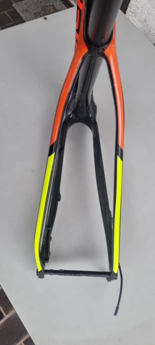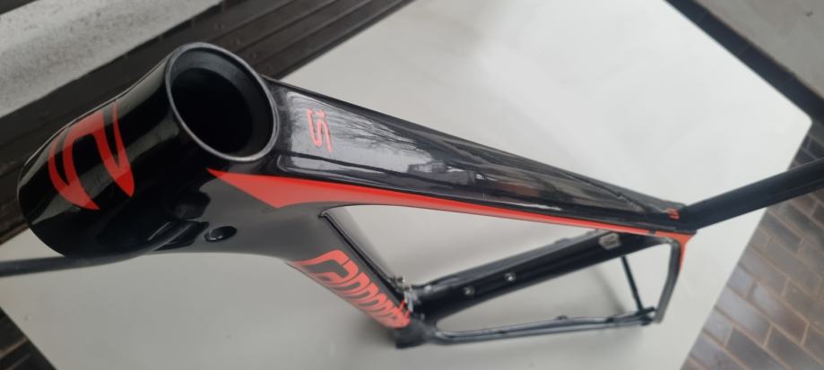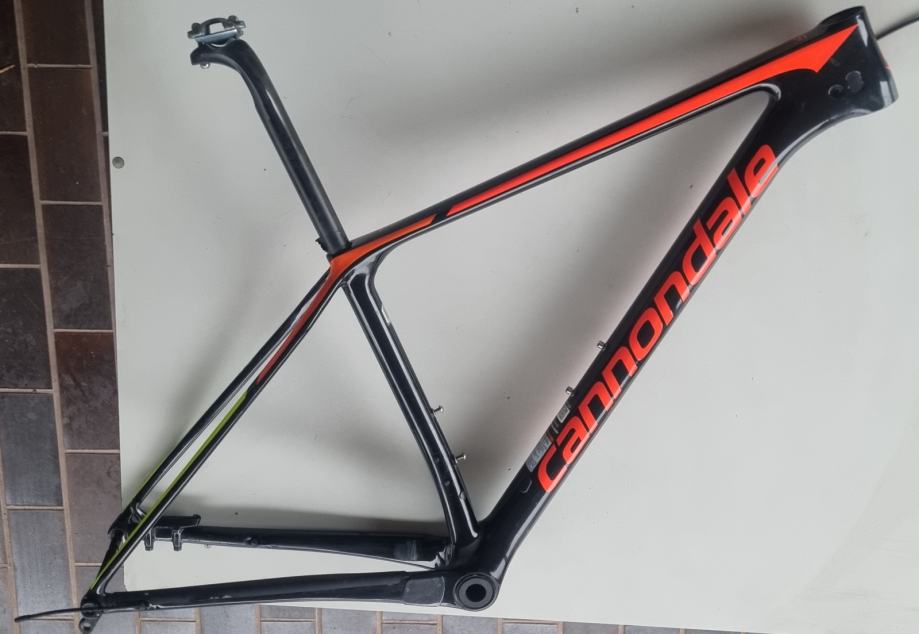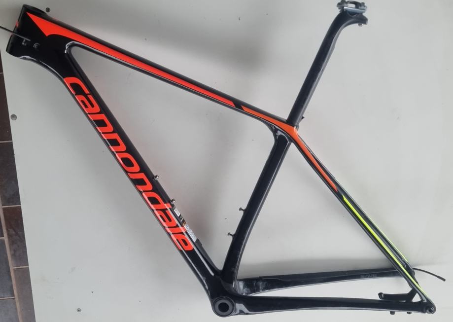 Na prodaju rabljena MTB karbonska rama/okvir Cannondale FSi u velicini M za 29 colne kotace. Mali znakovi koristenja na laku, inace u jako dobrom stanju, malo vozena. Uz ramu dolazi SAVE karbonska sic stanga i Shimano XT 1x12 M8120 pogon sa 55mm chainline-om specificnim za ovu ramu. Okvir ima dozivotnu garanciju.