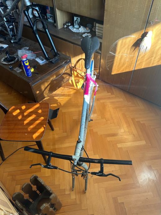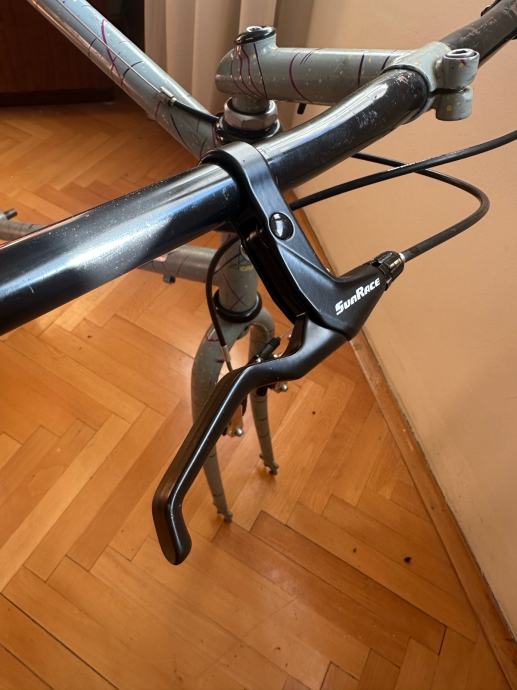 Rama, vilica, lula, volan, gripovi, cijev sjedala, chainstay protector, Shimano LX headset, bottom bracket, Shimano LX stražnji mjenjač, Sunrace ručice kočnica(novo), v-brake kliješta, sic i stražnji kotač s kazetom 7 brzina.