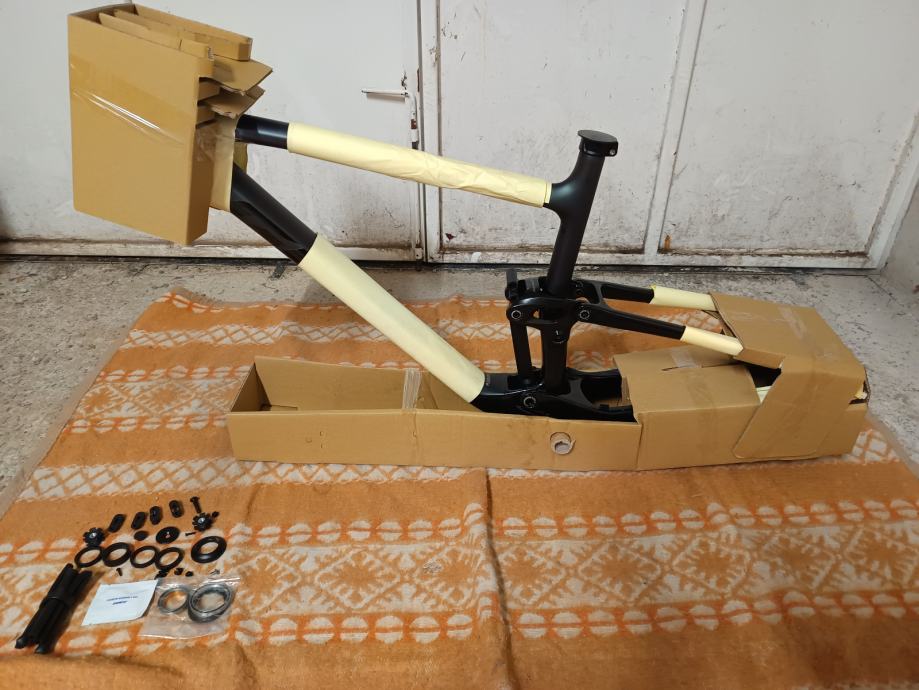 Uz ramu i shock ide novi droppout,headset,zatezač sic štange i svi potrebni djelovi za sklapanje.