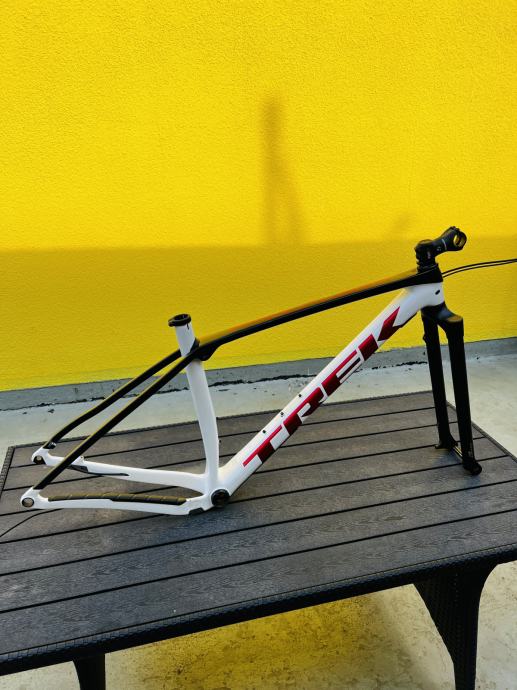 Prodajem mtb okvir, karbonski hardtail model Trek Procaliber Gen 2 2024 u veličini L. Okvir je vožen većinom po cesti i bijelim putevima tako da nema većih kozmetičkih oštećenja na okviru. Okvir je opremljen IsoSpeed tehnologijom koja vozaču pruža više udobnosti i bolje performanse na vožnji po off-road terenu. Okvir ima pripremu za unutarnje provođenje bužira kočnice, stražnjeg mjenjača i dropper cijevi sjedala. Na okvir vrijedi doživotno jamstvo od Trek-a. Na prodaju je samo okvir bicikla bez prednje vilice i lule kormila. Uz okvir dolazi stražnja osovina kotača (Boost 12x148 mm) te ležaji headseta.
