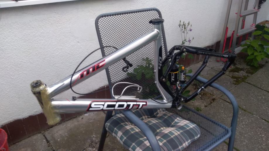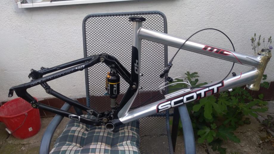 Scott MC40 full suspension rama 26", ocuvana, papiri, lagana, ozbiljnom kupcu gratis headset i nosac bidona te dropout i stezac sic stange, shock ima remote lockout sa 3 moda - zakljucan/otkljucan/"napola", rama ima odlicnu geometriju te je izuzetno brza, cijena je max spustena 330E te je fixna i zadnja