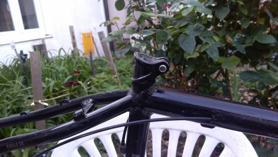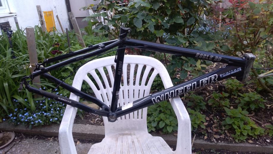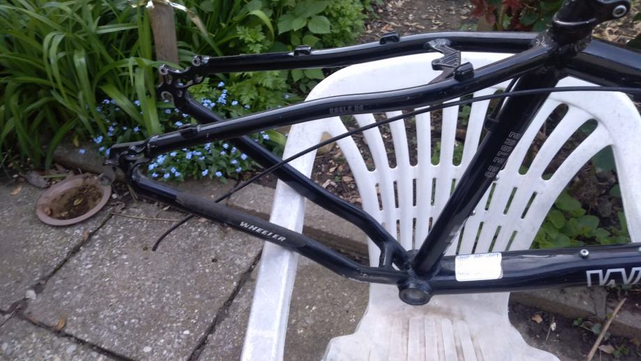 Wheeler Eagle rama 17,5", S-M, s tim da je vise M nego S zbog kompletne geometrije, za 26" kotace, jako lijepi detalji kako je rama pojacana, buziri prolaze kroz ramu, stezac sic stange je dio rame, a ne zasebni dio i slicno... Ozbiljnom kupcu gratis headset, stezac sic stange i dropout, rama ide kao na slikama, ima ponesto ogrebotina od naslanjanja i koristenja, klasika, bez ostecenja, jako lagana i brza, bila na full XT opremi i to sve govori. Cijena max spustena 120E te je fixna i zadnja