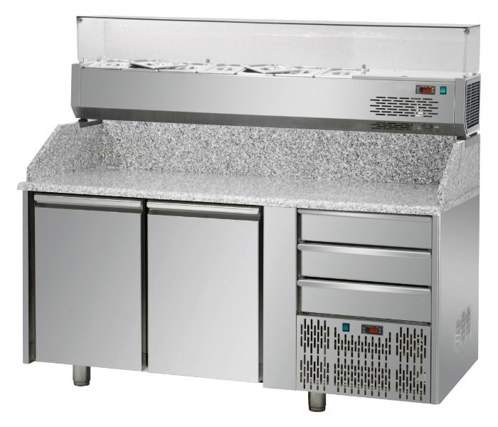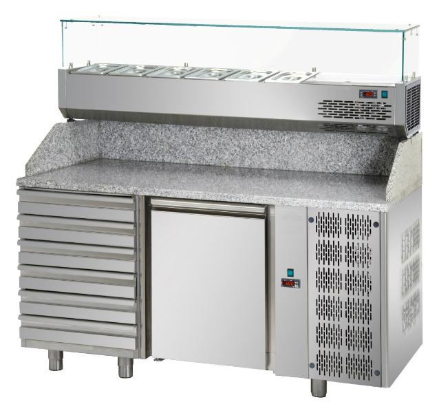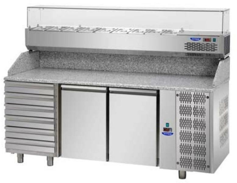 PIZZA pult za GN 1/1, 2 vrata + hlađena nadogradnja za 6 x GN1/4