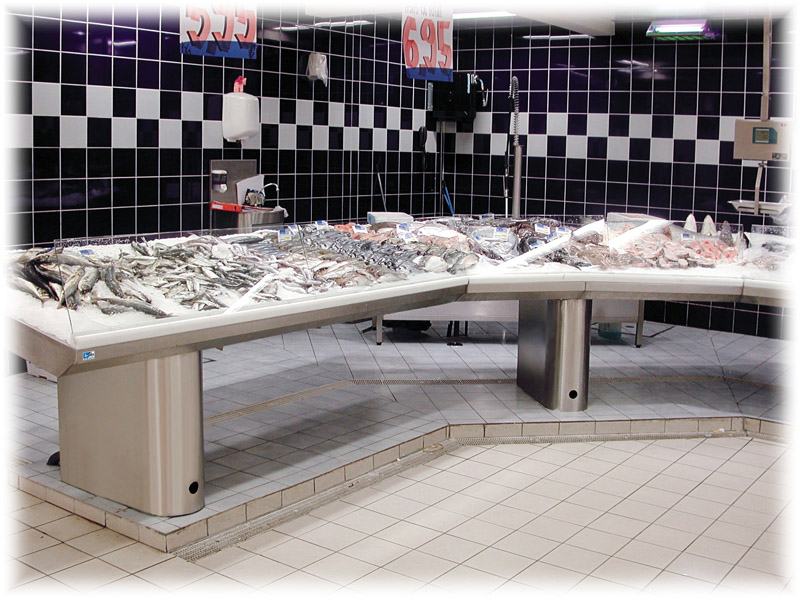 Inox stolovi za ribu, neutralni ili rashladni, dim. 150,200,250,300,350 cm,statičko hlađenje, kompletno od inoxa AISI316 otpornog na koroziju soli, bazeni i akvariji za slatkovodnu i morsku ribu