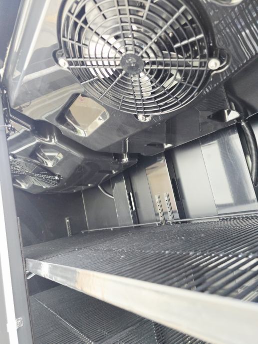 Ima 8 polica(mogu se i izvadit-pomicati)svijetlo LED ....ima i digitalni pokazivač temp i digitalni termostat....6 kola ispod..malo zatamnjena stakla...2 ključa i bravica za vrata zaključat..unutrašnjost metalna(nije pvc)