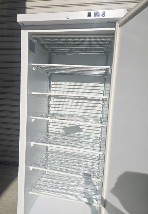 Bijela boja.Puna vrata,6polica,kola ispod. pokazivač temp.digitalno upravljanje...unutra metalna obloga(nije plastika)