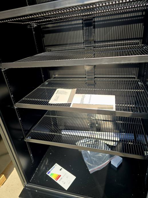 Ima 5 polica(mogu se i izvadit)svijetlo LED ....ima i digitalni pokazivač temp...mala kola ispod..staklena vrata..2 ključa i bravica za vrata zaključat...unutarnja metalna obloga(nije pvc)