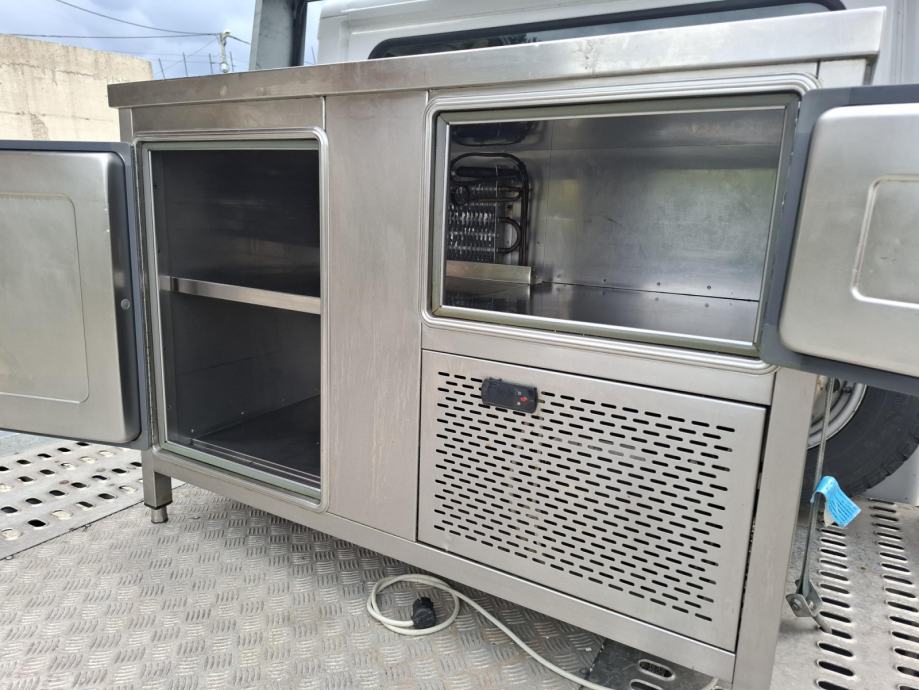 Rashladnu profi vitrinu sa dvoja vrata od inoxa,za + režim rada od 2-10 stupnjeva,dim. 1200x750x850mm prodajem.
