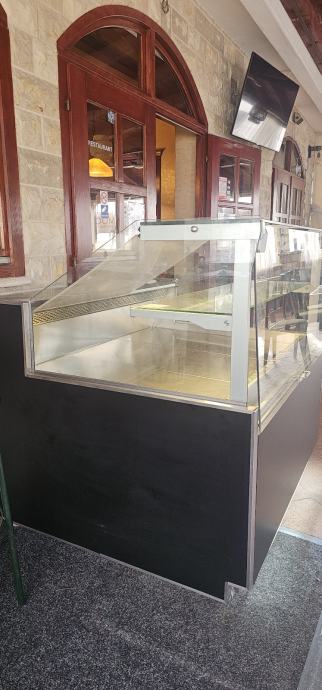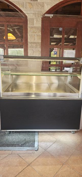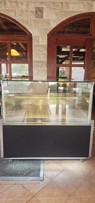 Rashladna izlozbena vitrina sa led rasvjetom,ugrađeni kotači, pristup sa obadvije strane, 2 godine korištena u sezonama.