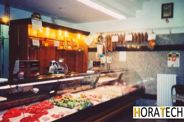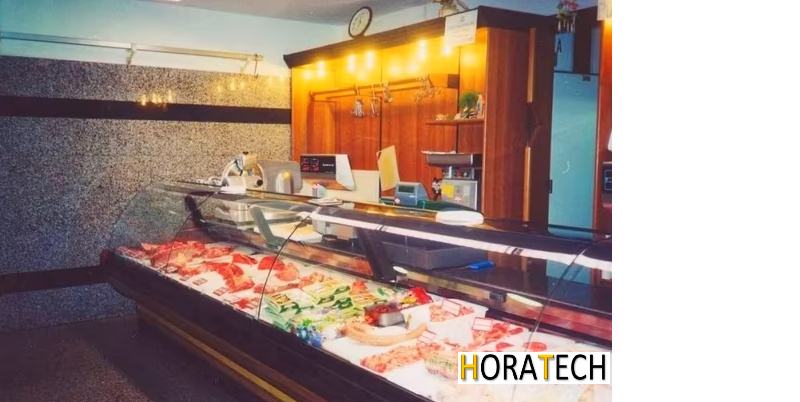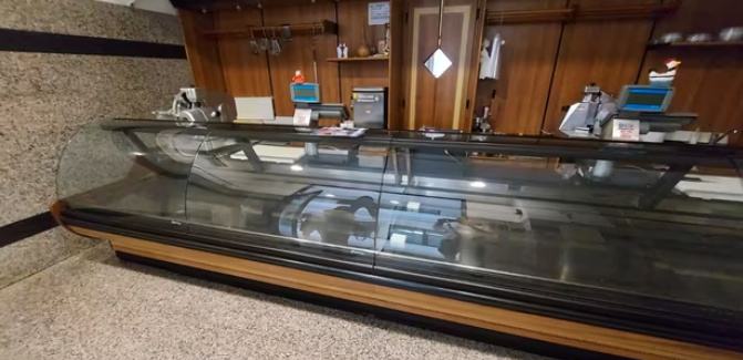 Rashladna vitrina i retropult za mesnicu, vitrina dužine 5500 mm (sastoji se od dva modula 3000+2500 mm) sa rashladnim uređajem.