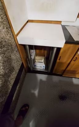 Retropult - radna ploha od inox-a za smještaj salamoreznice, shuko utičnice ugrađene, ladice za smještaj prodajnih vrećica, ostala radna ploha od crnog granita