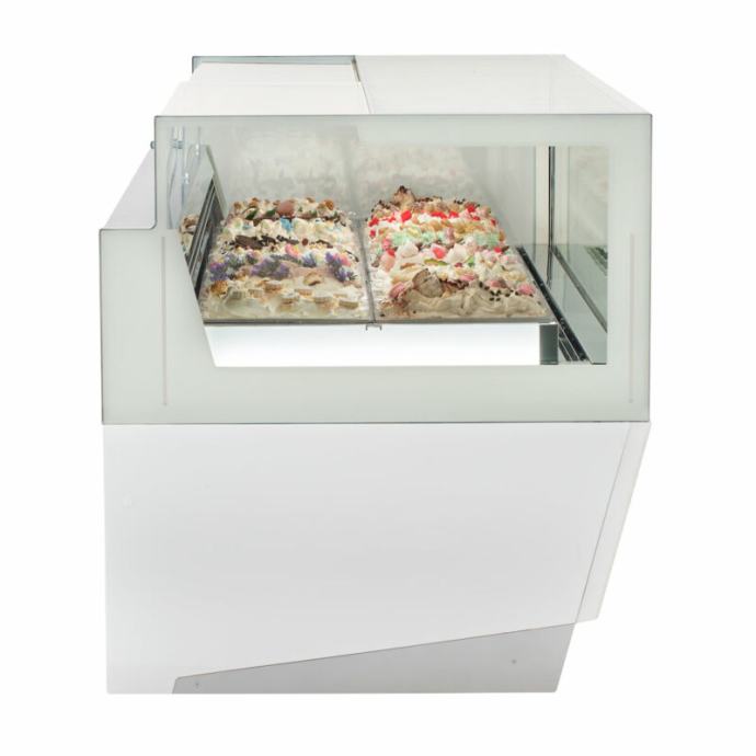 • LED i povišena izložbena površina – sladoledi izgledaju neodoljivo i privlače kupce