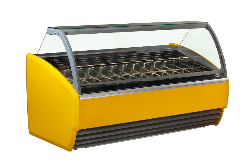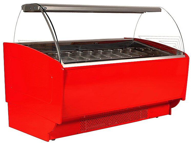 Prodajemo potpuno nove vitrine za sladoled renomiranog EU proizvođača, kapacitet od 7 do 24 posude, ravne, zaobljene, polukružne .