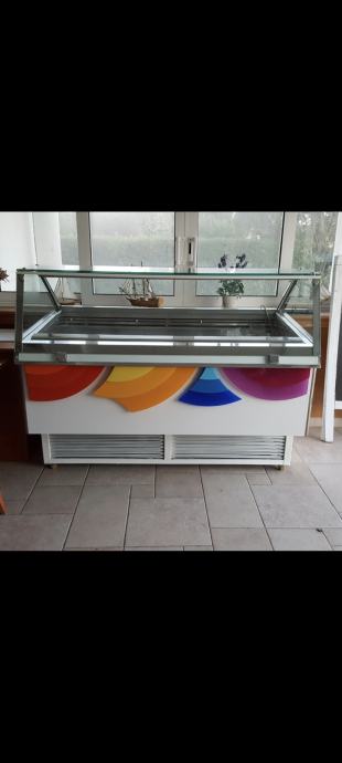 Uredna i 100% ispravna vitrina. Ugrađena nova elektronika Dva monofazna kompresora sa zračnim hlađenjem. Kapacitet 18 banjica. Napravljen servis.
