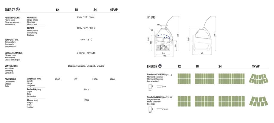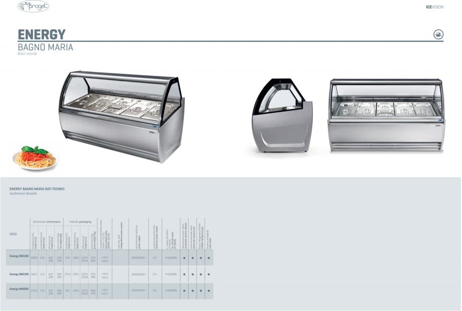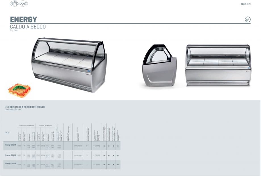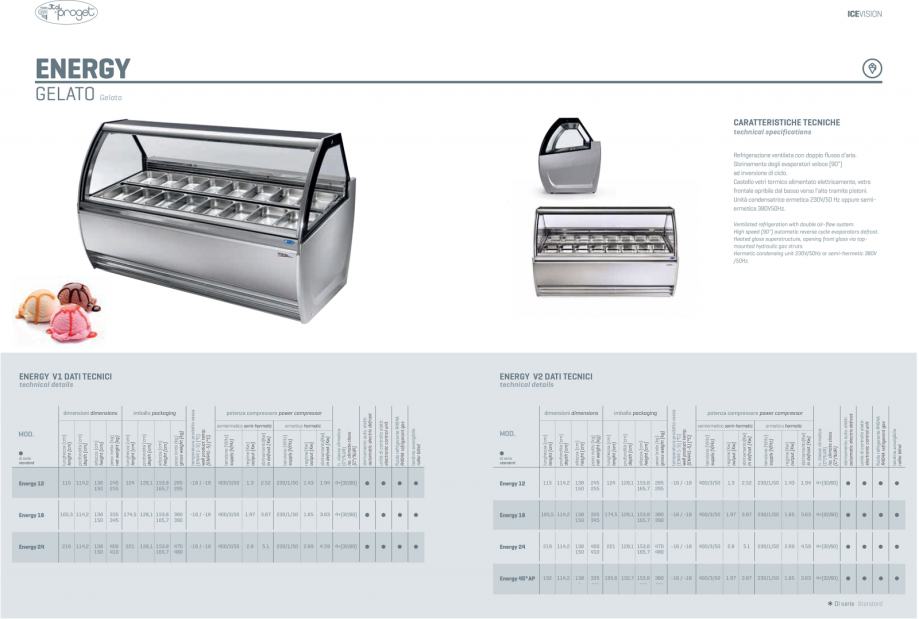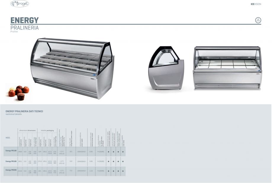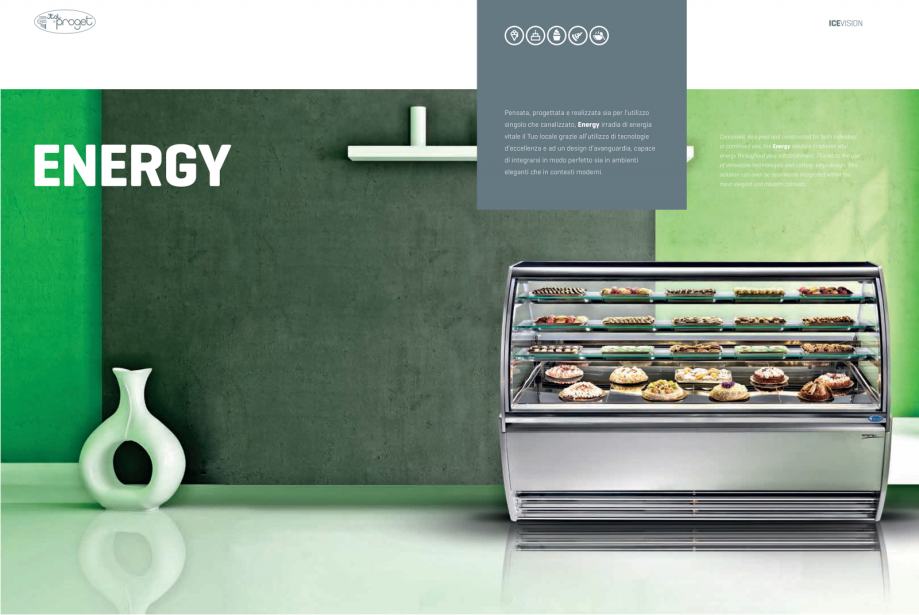 Energy linija je najjača linija u Italprogetovom portfelju i razvijena je da spriječi sve probleme s kojima se svakodnevno suočavaju vlasnici slastičarnica, gelaterija i trgovina delicijama. Ova profesionalna vitrina osigurava maksimalnu vidljivost proizvoda, savršene temperaturne uvjete i pouzdan rad.