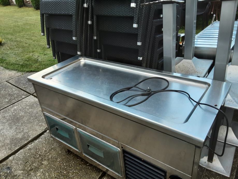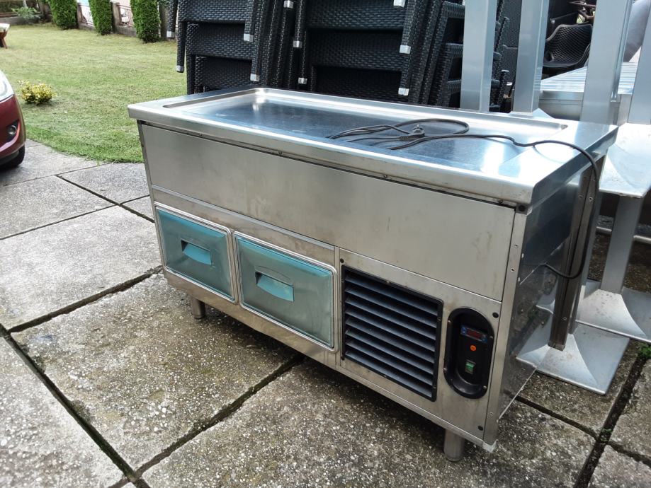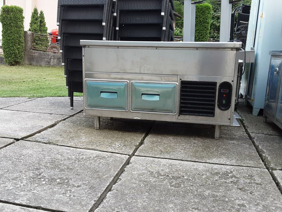Rashladna Vitrina iz naslova gotovo nova korištena samo 2mj Stol je rashladni u unutrašnjosti I gornja površina ( korito ) je rashladna za led ribu ili razne salate I hladnu hranu Vrhunski proizvod kupljeno u Švicarskoj hitno prodajem za 1099 eura nova plačeno 2385 eura poziv na mob 092 1223 023