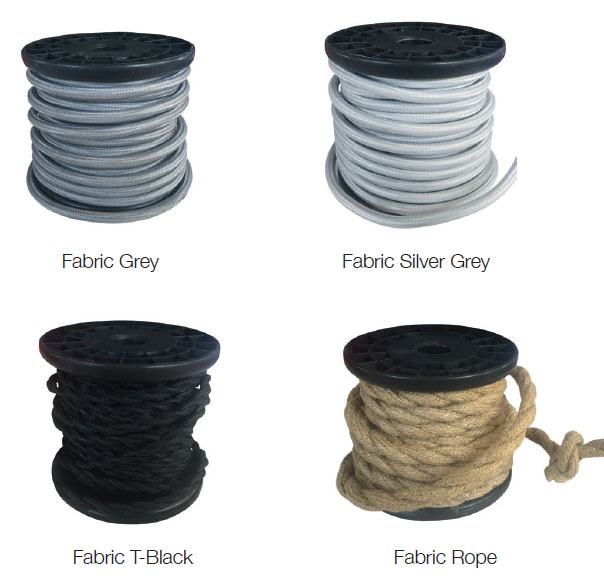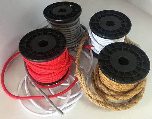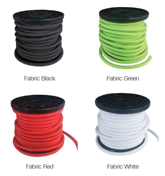 Dekorativni tekstilni kablovi u bojama: Crvena, Crna, Zelena, Siva, Bijela, Twisted crna, Fabric ROPE, presjek vodića 2x0.75mm2.
