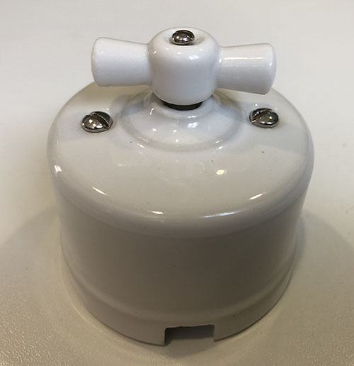 - Retro porculanski prekidač s funkcijom ON/OFF kružnim neprekidnim okretanjem u oba smjera.