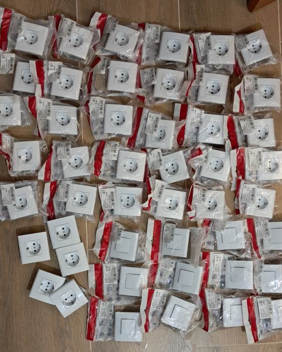 // prodaje se višak, 33 komada utičnica i 12 komada sklopke. Kupljene u Bauhaus. Komad 1,5€. Prodajem samo sve u kompletu. Nalazi se u Koprivnici. Sve INFO na 091-8863-555.