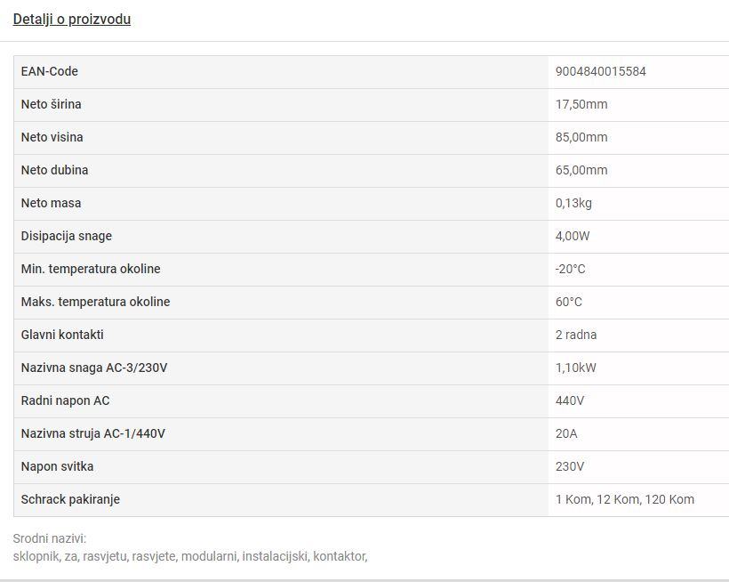 Nazivna snaga AC-3/230V 1,10kW. SVITAK230VAC.