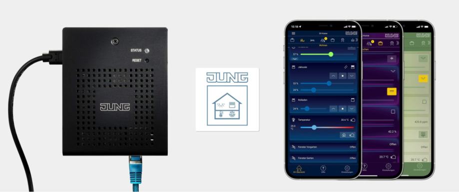 JUNG SV-SERVER2, uključujući napajanje, omogućuje vizualizaciju i upravljanje KNX sustavima putem uređaja s preglednikom ili aplikacijom kompatibilnom s HTML5 (iOS, Android). Moguća je i vizualizacija i upravljanje Philips Hue sustavima. Radi u lokalnim IP mrežama s DHCP podrškom ili sa statičkom IP adresom u zatvorenom prostoru. Sa značajkama kao što su SV-Home za web vizualizaciju, SV-Control za puštanje u rad i jednostavnim stvaranjem unaprijed konfiguriranog korisničkog sučelja, idealan je za kućne i male komercijalne primjene. Nudi do 24 korisnika s različitim ulogama, pohranu podataka i izradu dijagrama, povezivost KNX sabirnice putem sučelja, integraciju Philips Hue, SONOS zvučnika i glasovnih usluga kao što su Amazon Alexa i Google Home. Siguran udaljeni pristup osiguran je putem myJUNG računa (potreban je SV-SERVER-L), a uređaj se može ažurirati i nadograditi.