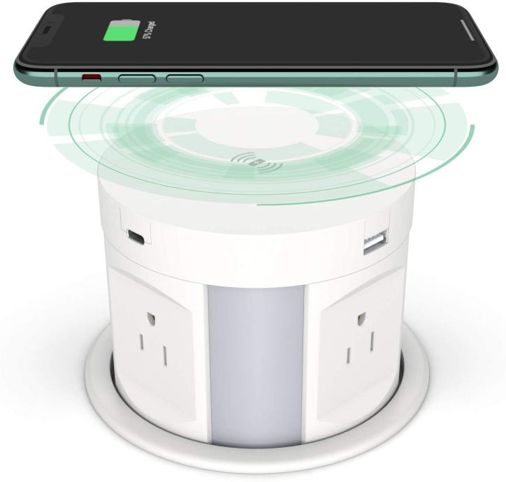Niska izvlačna utičnica Smart (Wireless), 4šuko utičnice + 2USB-C + bežični punjač, bijela i crna – 192,59 €