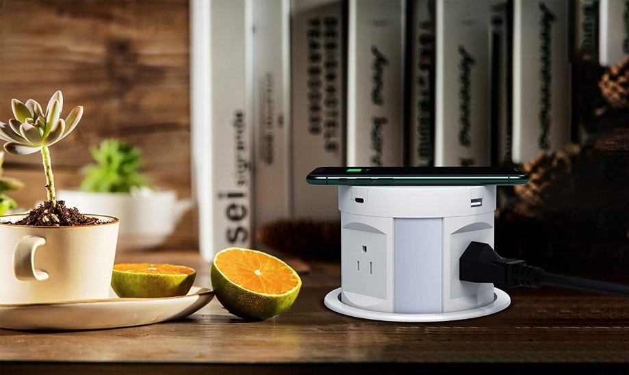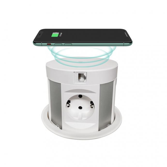 Niska izvlačna utičnica Smart (Wireless, 4šuko utičnice + 2USB + bežični punjač, bijela i crna – 189,52 €